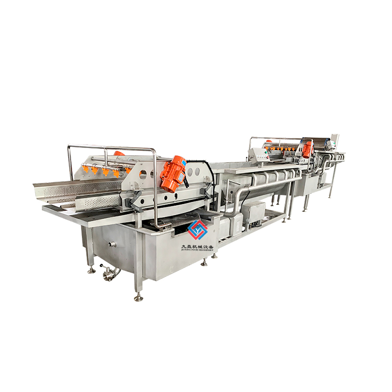 凈菜加工成套生產(chǎn)線是針對(duì)多種的蔬菜進(jìn)行清洗和加工處理的,可以將蔬菜表面的泥土進(jìn)行清洗干凈,還能夠?qū)κ卟诉M(jìn)行農(nóng)殘?zhí)幚?,可以將蔬菜的農(nóng)藥進(jìn)行分解,提升蔬菜的品質(zhì)程度,通過(guò)清洗之后的蔬菜輸送到震動(dòng)篩進(jìn)行麗水處理,能夠?qū)⑹卟松洗蟛糠值乃譃r干,之后輸送到風(fēng)干設(shè)備上可以將蔬菜的表面水分更加充分的蒸發(fā),之后再進(jìn)行整理過(guò)后可以進(jìn)行真空包裝處理,經(jīng)過(guò)真空包裝處理之后的蔬菜可以延長(zhǎng)保鮮時(shí)間,建議填充質(zhì)量的氮?dú)饪梢允贡ur效果好。