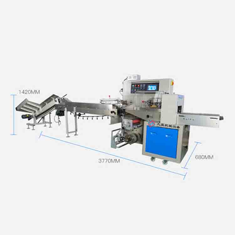 技術(shù)參數(shù): 型號:JYB-350 袋子形狀:背帶式包裝(可定制) 縱封/橫封紋路:網(wǎng)紋式包裝/直紋式包裝 卷膜直徑:350mm 制袋寬度:50-160mm 可選配置:打碼機(jī) 充氣裝置 烙餅器 料理機(jī) 包裝材料:能單面熱封包裝膜材料 電壓:220V 功率:2.6kw 機(jī)器尺寸:4020*770*1450mm 機(jī)器重量:580kg 制袋長度:65-190/120-280mm